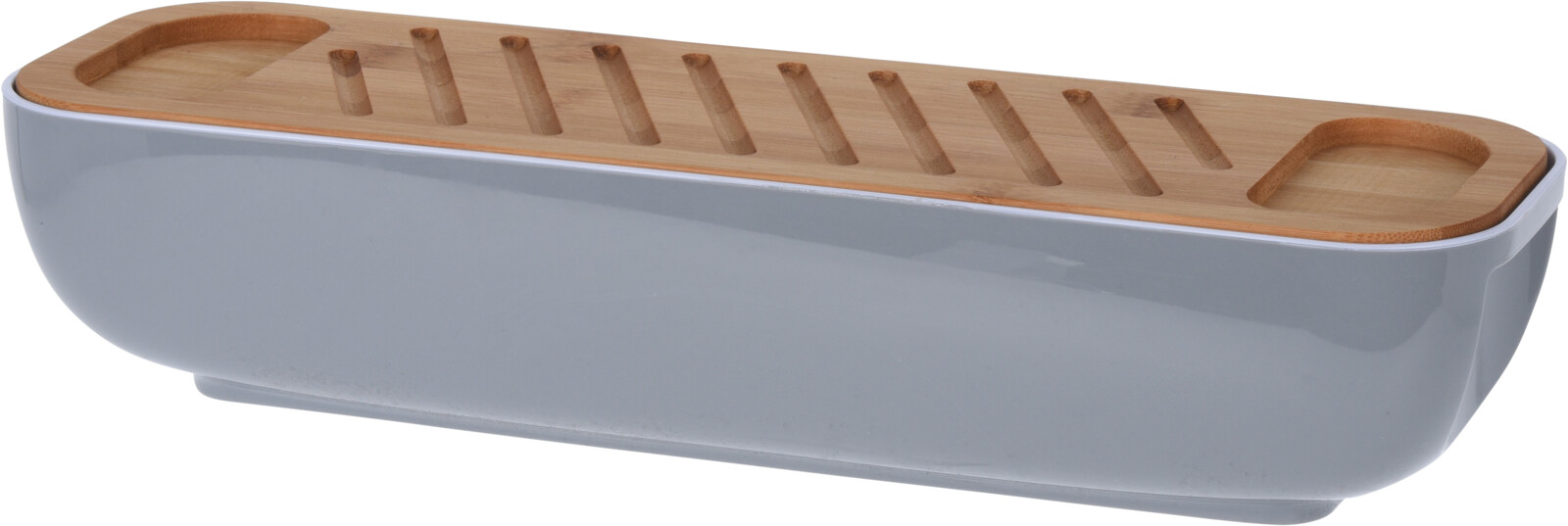 Plastová dóza na pečivo s bambusovým prkýnkem se stane vynikajícím pomocníkem ve vaší kuchyni. Ochrání pečivo před ztvrdnutím či zvlhnutím, ale zároveň ho budete mít neustále při ruce. Součástí je kvalitní celoplastový krájecí nůž.