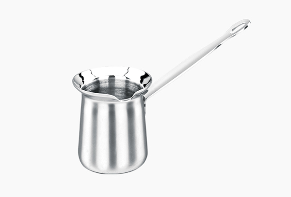 Moderní nerezová džezva je určena pro tradiční přípravu turecké kávy. Je vyrobena z prvotřídní nerezové oceli, leštěný povrch jí dodává elegantní vzhled. Kapacita 3 šálky. Snadnou manipulaci s džezvou zajišťuje praktická ergonomicky tvarovaná rukojeť. Lze ji použít na všechny typy sporáku kromě indukce. Džezva je sice magnetická, ale vzhledem k malému průměru nelze zaručit, že indukční vařič sepne. Z toho důvodu ji pro indukce nedoporučujeme.