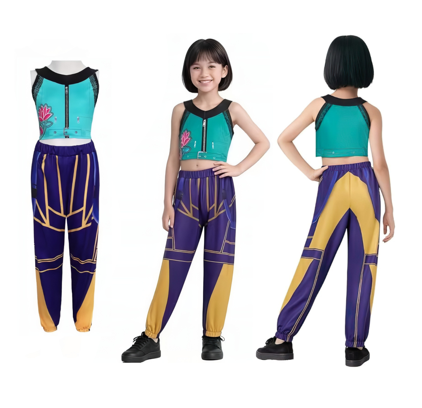 Dětský kostým inspirovaný postavou Zoey z Demon Hunters v K-pop stylu potěší všechny malé fanoušky akčních hrdinek i taneční módy.
