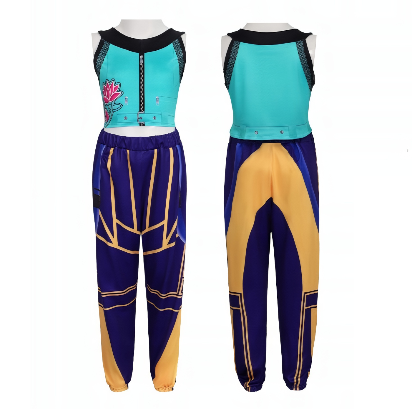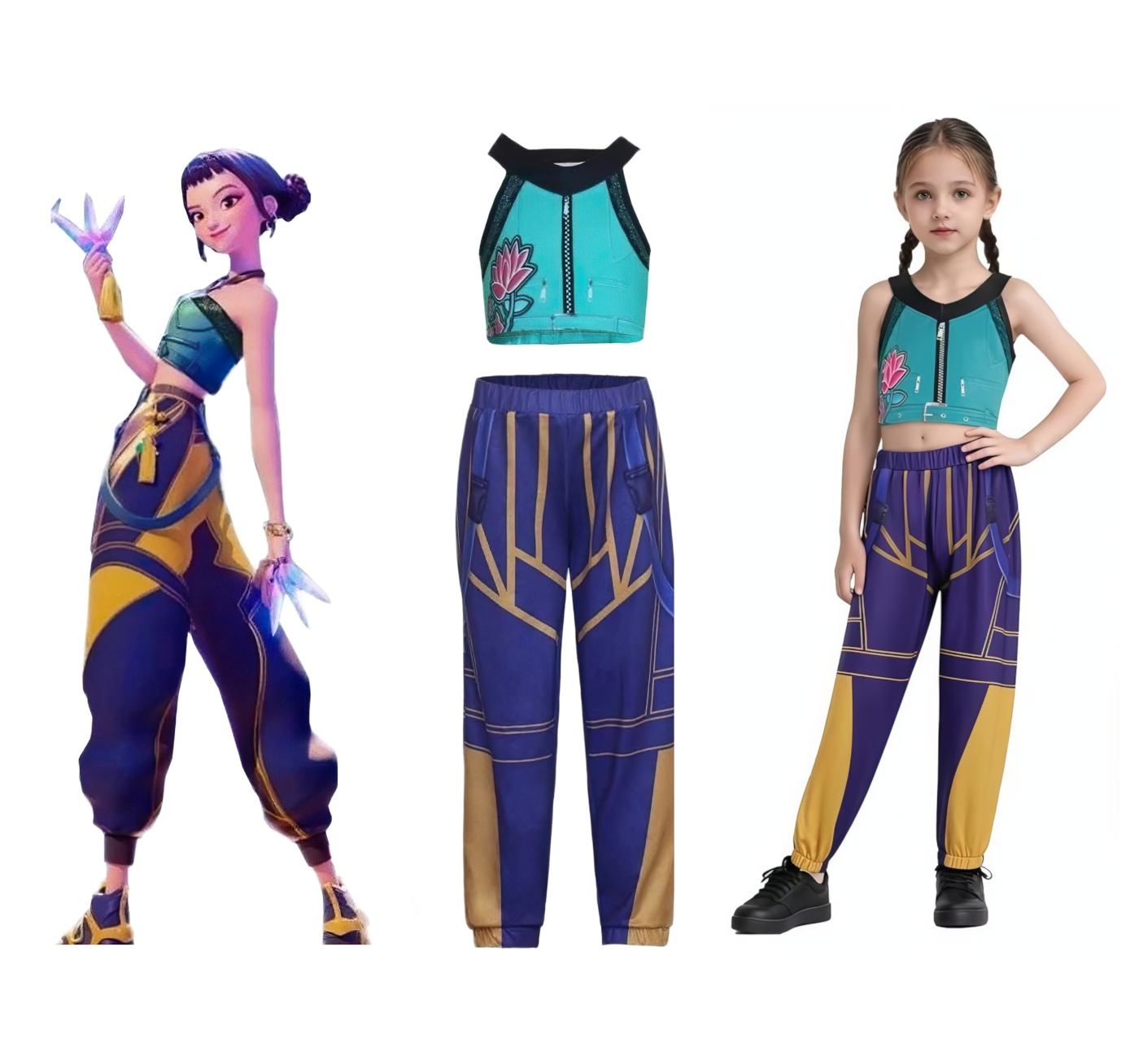 Set se skládá z pohodlného krátkého topu se zapínáním a výrazným potiskem a stylových kalhot s elastickým pasem, které zajišťují komfort při nošení i volnost pohybu. Lehký a příjemný materiál je vhodný na karnevaly, tematické oslavy, cosplay, vystoupení i každodenní hraní.