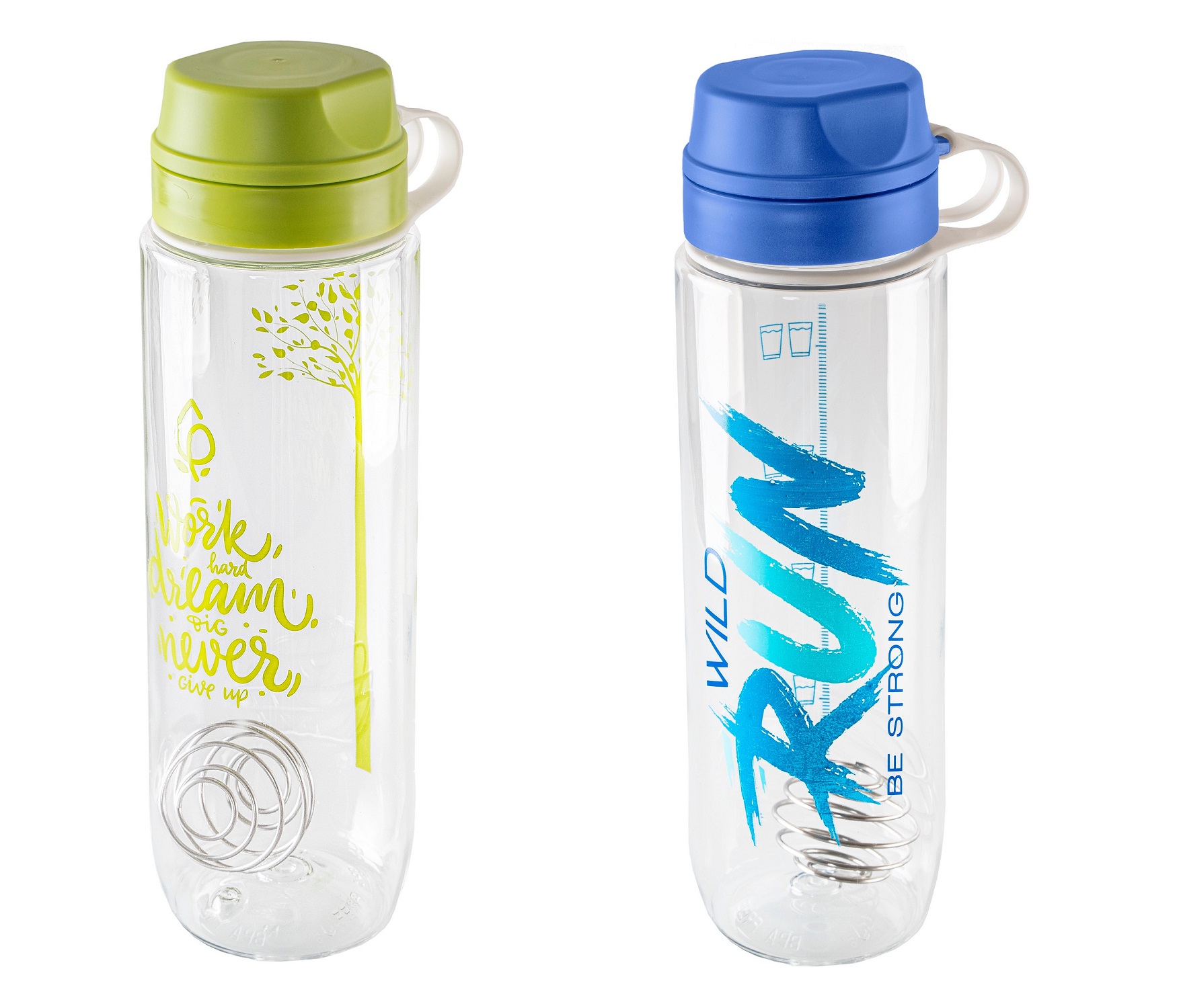 Praktická láhev na vodu. Je vyrobena z kvalitního, zdravotně nezávadného tritanu, který je odolný proti nárazům. Ideální na výlety, sport i na denní použití. Součástí je výjimatelný shaker. Bez ftalátů a BPA. Atraktivní potisk. Objem 0,6 l. Barevné provedení – transparent/zelená, transparent/modrá
