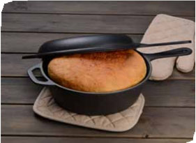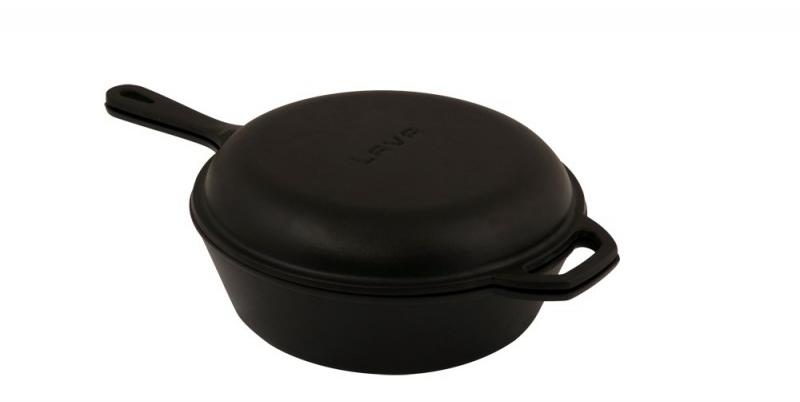 Dvojitá litinová pánev o průměru 26cm. Rozměry hluboké pánve – výška 7,8 cm, délka s rukojetí 43,5 cm. Nízká pánev – výška 4,1 cm, délka s rukojetí 43,5 cm. Výhodou je, že pánve lze použít také samostatně. Má multifunkční využití, můžete na ní smažit, zapékat, flambovat. Rovnoměrně se prohřívá až k samému okraji a dlouho udržuje teplo. Pánev je stabilní a dá se používat na všechny typy sporáků i ploten a grilů. Má nepřilnavý povrch a rychle reaguje na změny teplot. Dá se využít i k zapékání v troubě.