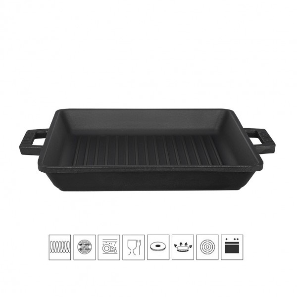 Litinová grilovací plotýnka o rozměrech 26×26 cm je vyrobena z poctivé litiny, která má opravdu dlouhou životnost, perfektně vede teplo, je odolná proti korozi, poškrábání a odštípnutí. Plotýnku můžete používat na všech typech grilů a vařičů včetně indukce, je vhodná i pro zapékání v troubě a stane se tak praktickým pomocníkem ve Vaší kuchyni. Díky skvělým tepelným vlastnostem litiny můžete pokrmy z plotýnky rovnou servírovat, jídlo udržíte dlouho teplé. Litinové nádobí je oblíbené mezi šéfkuchaři, protože skvěle drží teplo a je prakticky nerozbitné.
