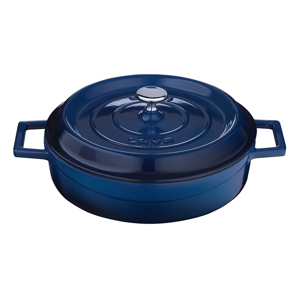 Kvalitní litinový hrnec by měl být základem každé dobře vybavené kuchyně. Tento kastrol Vám nabídne průměr 24 cm, s výškou 7 cm a objemem 2,4 l. Má masivní litinovou pokličku a vysoce odolné smaltování v modré barvě. Kastrol se tak stane ozdobou Vaší kuchyně. Litina samotná nabízí velmi vysokou tepelnou vodivost, což v kombinaci se značnou silou materiálu zaručuje vysokou efektivitu při vaření. Kastrol se rychle a rovnoměrně rozehřívá, zároveň však pomalu chladne. To umožňuje dovařovat pokrmy na vypnutém sporáku. Mytí v myčce výrobce nedoporučuje – může snížit jas barev.