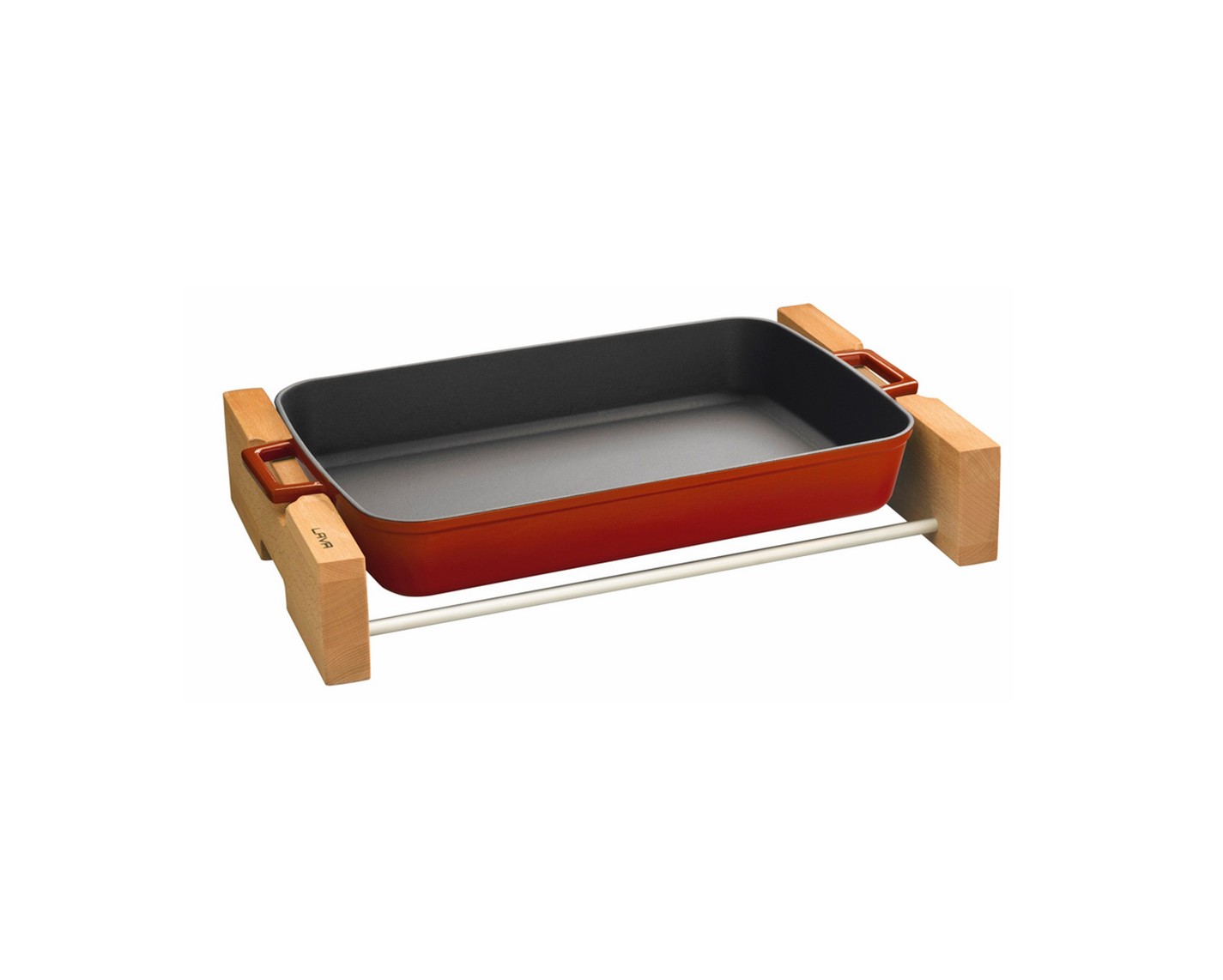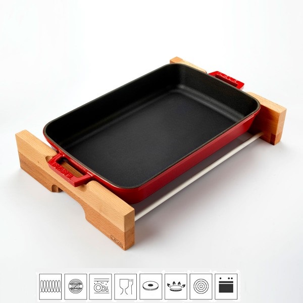 Litinový pekáč 22x30cm s dřevěným podstavcem – červený