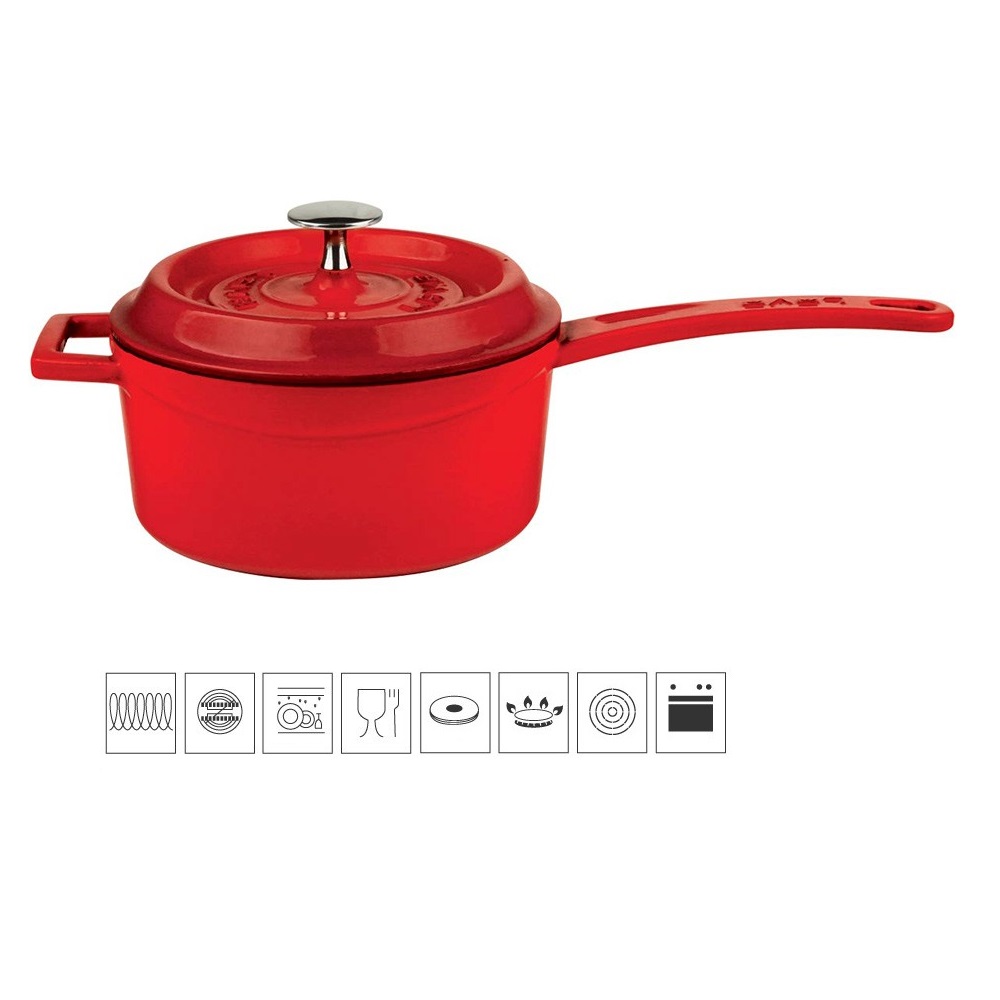 Litinové rendlíky a hrnce patří k nádobí, které po staletí patří k těm nejpoužívanějším. A dědí se doslova z generace na generaci. Nádobí z litiny ocení zejména kuchaři a kuchařky, kteří milují pomalé vaření. Litina patří k materiálům, které úžasně vedou teplo, sice se pomaleji zahřívá, ale zahřívá se rovnoměrně a po celé ploše. Díky tomu, že litina teplo akumuluje, můžete z rendlíčku v klidu servírovat – jídlo nebude rychle studené. Rendlík lze používat na všechny typy sporáků i ploten, včetně indukce. Můžete jej využít i pro zapékání do trouby. Průměr rendlíku je 16 cm, celková délka i s rukojetí je 34,5 cm a výška 9,5 cm. Objem 1,35 l.