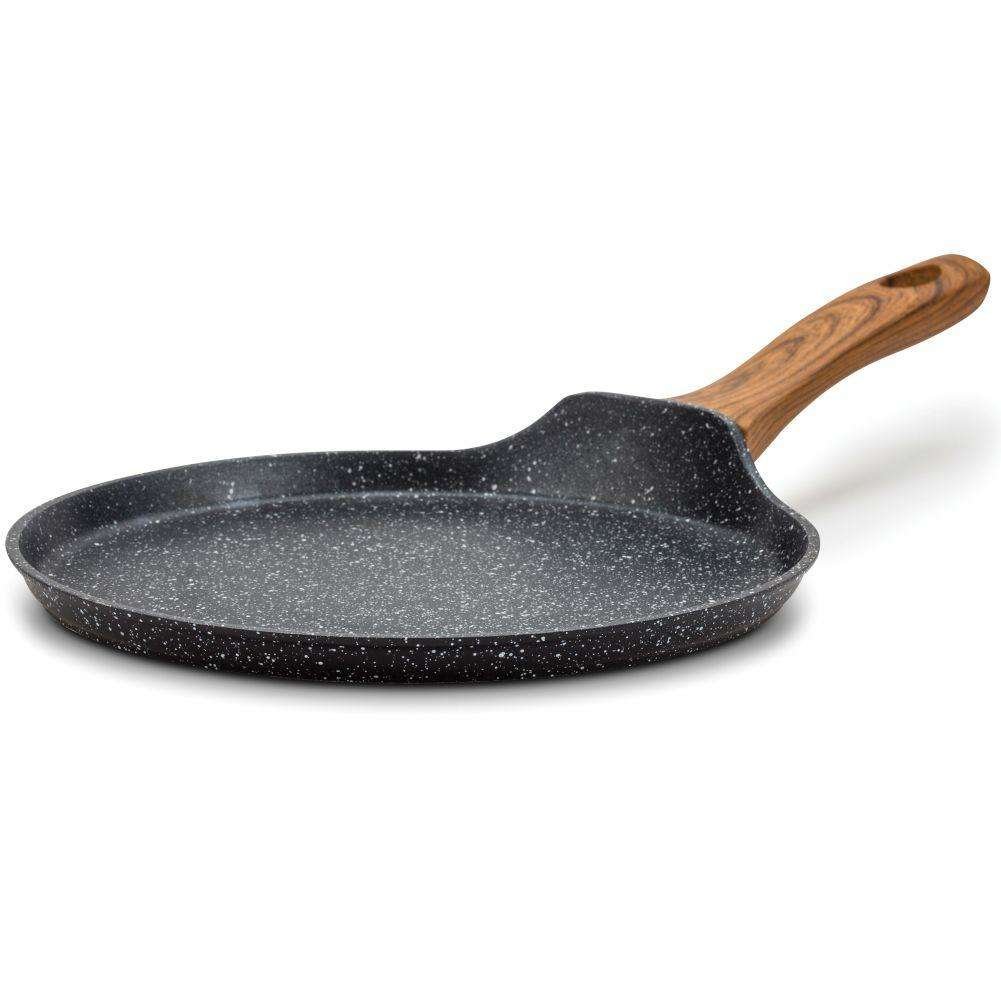 Pánev na palačinky o průměru 24 cm a objemu 0,5 l je opatřena granitovým nepřilnavým povrchem, díky kterému se pokrm nepřipálí a navíc je odolný proti poškrábání. Je skvělá pro přípravu palačinek. Pokud chcete vařit zdravě, granitové nádobí Vám zajistí velmi efektivní i zdravé vaření, a to na minimálním množství tuku – vhodné pro dietní pokrmy. Granitové pánve jsou vyrobeny z litého hliníku – lehkého a skvěle vodivého kovu, který zajišťuje rychlý přenos tepla. Snadno se čistí, je vhodné i do myčky na nádobí.