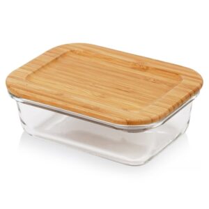 Skleněná dóza s bambusovým víčkem Vás uchvátí svým jednoduchým, minimalistickým designem a stane se ozdobou Vaší kuchyně. Je ideální na uchovávání másla, sypkých potravin, těstovin, oříšků, má také dekorační využití, fantazii se meze nekladou.