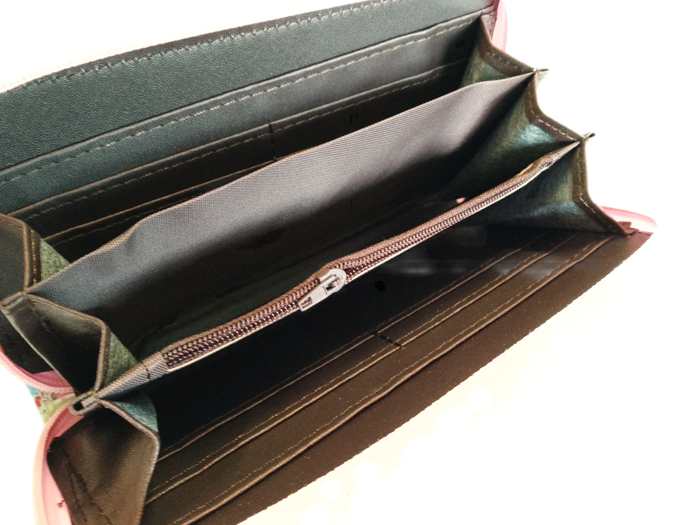 Peněženka je vyrobena z kvalitní syntetické kůže, která je odolná a zároveň příjemná na dotek. Uvnitř najdete podšívku z pevné textilie, která chrání obsah před opotřebením. Povrch je snadno omyvatelný a dlouhodobě si zachovává svůj sytý barevný vzhled. Interiér nabízí promyšlený úložný prostor – několik přihrádek na karty, dvě větší přihrádky na bankovky a kapsičku na zip pro mince. Díky zipovému uzavírání po celém obvodu zůstane vše bezpečně uvnitř, ať už peněženku nosíte v kabelce nebo batohu.