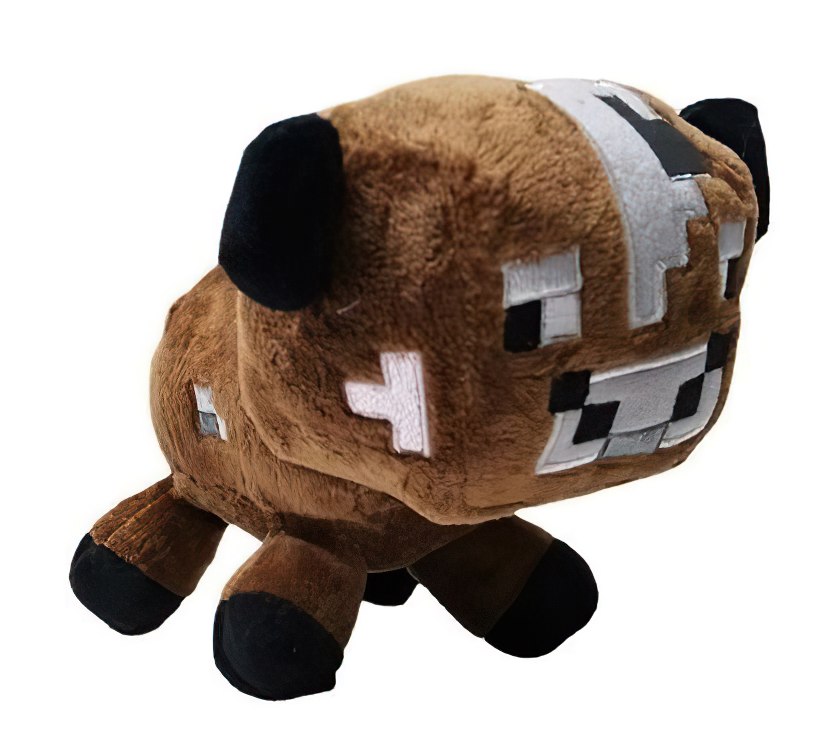 Hnědá kravička s typickým kostkovaným designem je inspirovaná pasivními zvířaty, která hráči dobře znají z Minecraft světa. Díky svému autentickému vzhledu a výrazným barvám se stane oblíbeným společníkem pro děti i dospělé hráče.