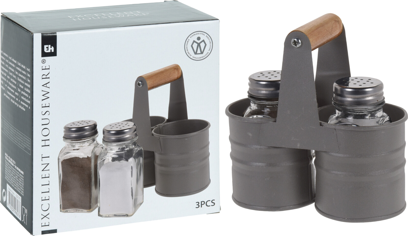 Stylový set solničky a pepřenky v praktickém stojánku by neměl chybět na Vašem stole.