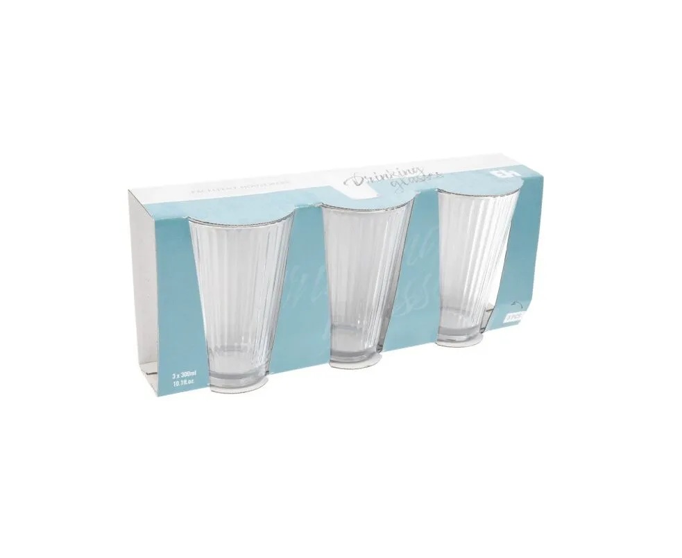 Elegantní provedení z odolného a pevného skla – sada sklenic 3 × 300 ml se hodí na podávání limonád, džusů, vody, krásně se v nich bude vyjímat i Caffe Latte.