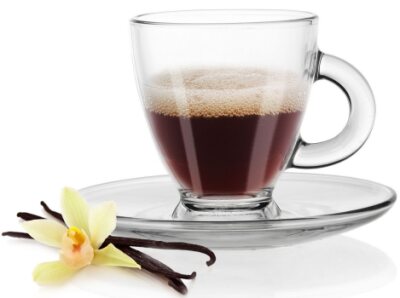 Skleněný šálek na espresso s podšálkem se pyšní atraktivním, jednoduchým designem a díky němu se podávání Vaší oblíbené kávy stane příjemným zážitkem. Výška s podšálkem 8 cm, průměr 6 cm, oválný podšálek má rozměry 12×10 cm.