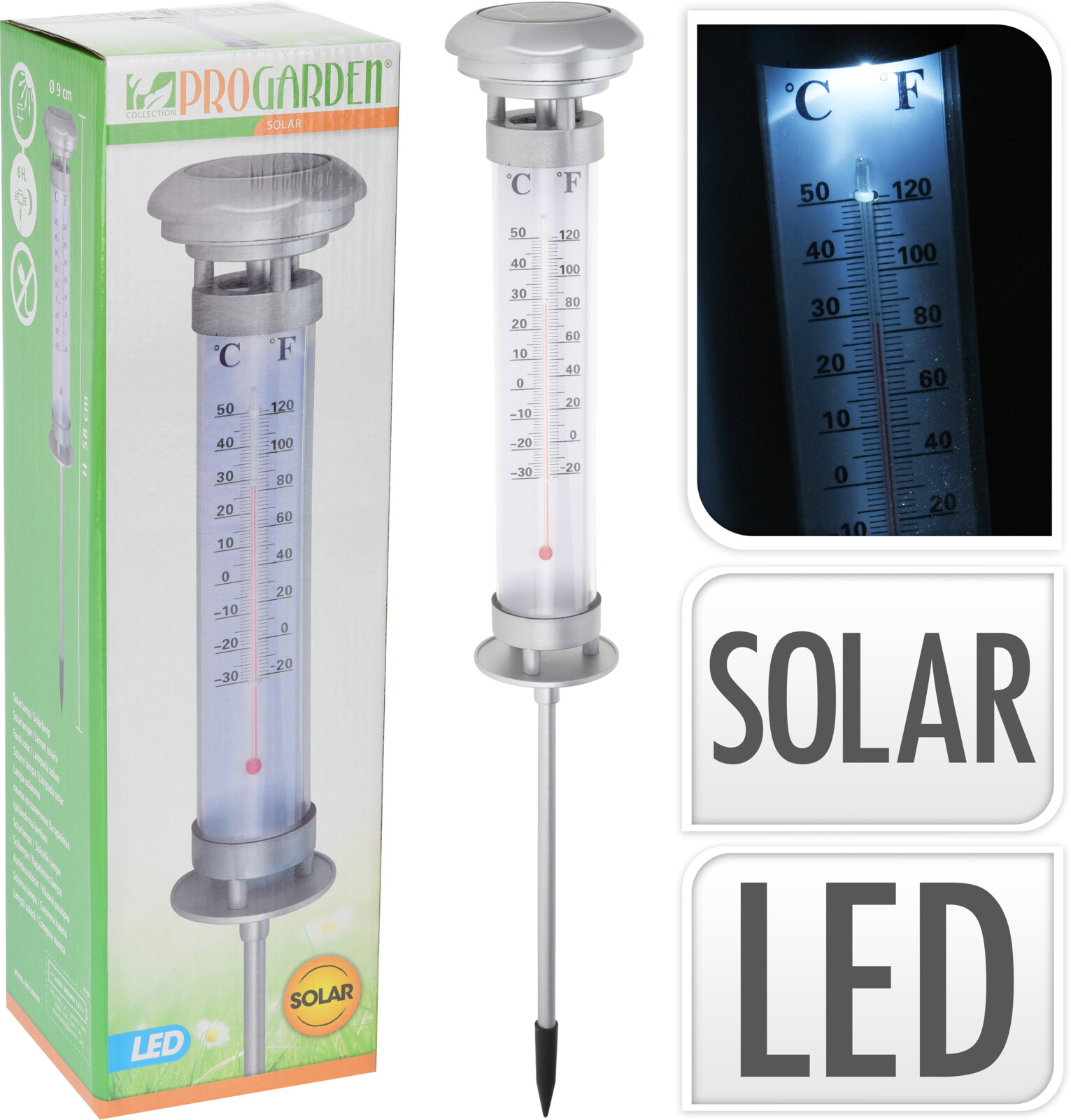Solární světlo s teploměrem