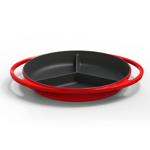 Trio litinová grilovací pánev o průměru 22 cm se díky své elegantní červené barvě stane ozdobou Vaší kuchyně.