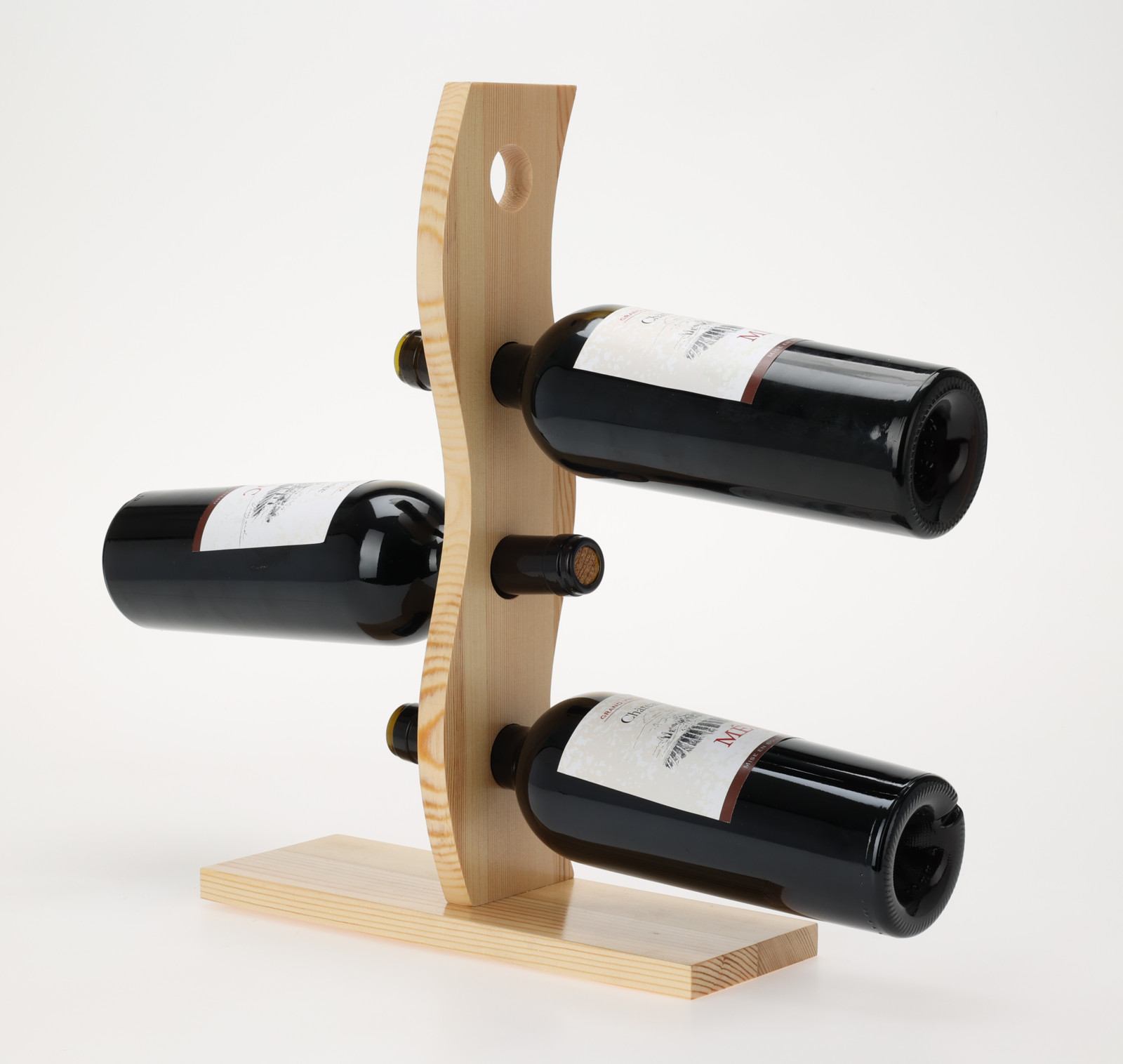 Praktický a originálně vypadající stojan na víno WAVE z masivního borovicového dřeva je nejen funkčním, ale i dekorativním doplňkem interiéru. Vystavte své nejlepší kousky, na které jste pyšní. Stojan na víno se stane unikátním kouskem ve Vašem interiéru a nejoblíbenější dekorací. Stojan na víno udržuje láhve v optimálním stavu po celou dobu a můžete v něm uložit čtyři lahve. Rozměry 30x40x10 cm